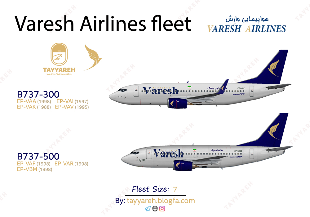 لینک معرفی ناوگان (فعال و بازنشسته) شرکت هواپیمایی آسمان: