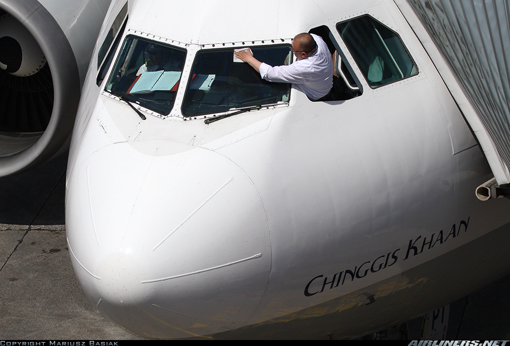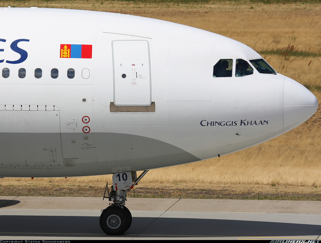 این هواپیما با شماره سریال 526 ساخته شد و نخستین پرواز خود را در تاریخ 1989/10/05 انجام داد. در 1990/03/30 توسط شرکت لوفتهانزا خریداری شده و هفت سال با رجیستر D-AIDK برای این شرکت پرواز کرد. در اکتبر 1997 از ناوگان لوفتهانزا خارج و با رجیستر F-WHPT به شرکت ایرباس منتقل شد. کمتر از یک سال بعد، هواپیمایی مغولستان (MIAT) هواپیما را در 1998/06/09 با رجیستر F-OHPT از ایرباس اجاره کرد و نام آن را چنگیز خان نهاد تا اینکه در 2008/05/23 به ملکیت این شرکت درآمده و رجیسترش به JU-1010 تغییر یافت.