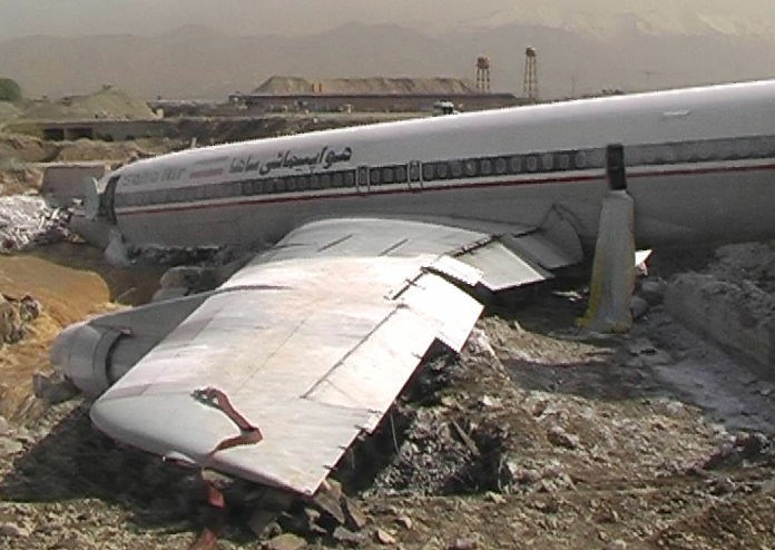 ـ شامگاه چهارشنبه 31 فروردین 1384 این هواپیما که از فرودگاه کیش به سمت تهران پرواز میکرد، هنگام فرود در فرودگاه مهرآباد، بدلیل اشکال در سیستم هیدرولیک و از کار افتادن ترمز، هواپیما به سمت راست باند منحرف شده و پس برخورد به تپه خاکی انتهای باند، در کانال رودخانه کن سقوط کرده و موتور دوم هواپیما آتش گرفت. موتور سوم نیز از جا کنده شد. در این حادثه 2 نفر بر اثر خفگی در آب کشته، یک کودک خردسال مفقود و تعداد زیادی مصدوم شدند. این هواپیما 157 مسافر و 16 خدمه داشت.