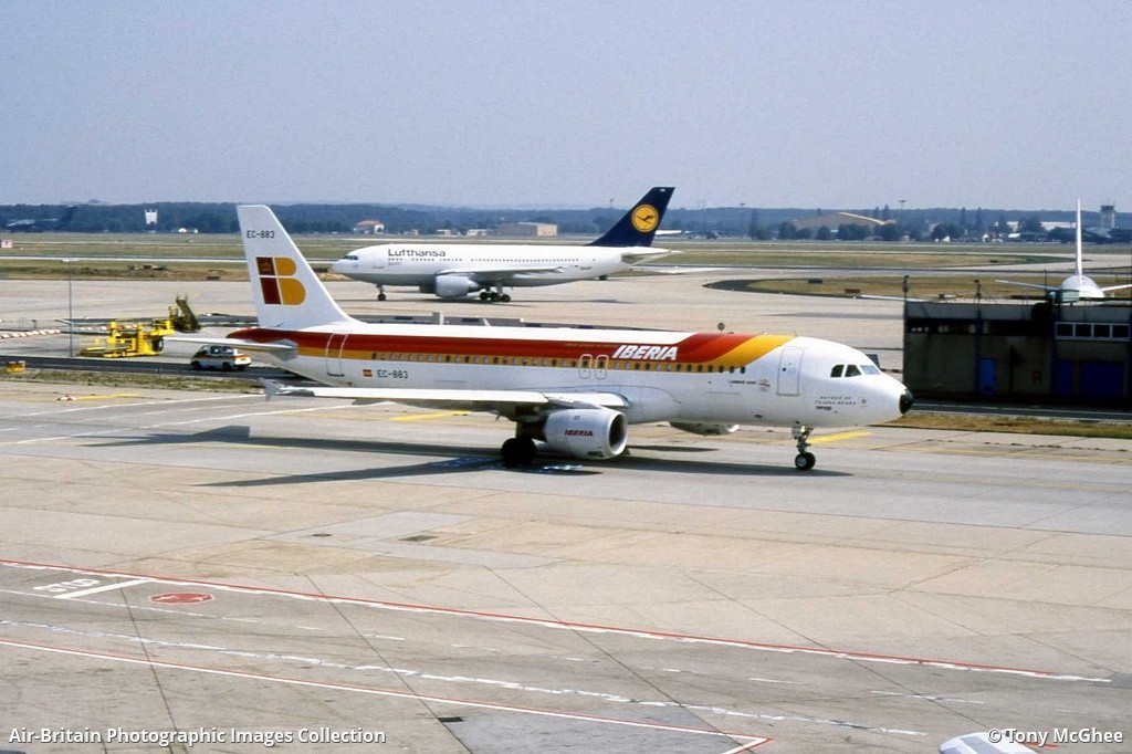 این هواپیما با شماره سریال 303 ساخته شد و نخستین پرواز خود را در تاریخ 1992/02/14 انجام داد. در 1992/05/12 با رجیستر EC-883 به شرکت اسپانیایی Iberia تحویل داده شد و حدود پانزده سال برای این شرکت پرواز کرد. در این مدت دو بار تغییر رجیستر داده و ابتدا در جولای 1992 رجیستر EC-FML و سپس در مارس 2002 رجیستر EC-ICU برای این هواپیما ثبت شد. این مطالب از وبلاگ طیاره کپی شده است.