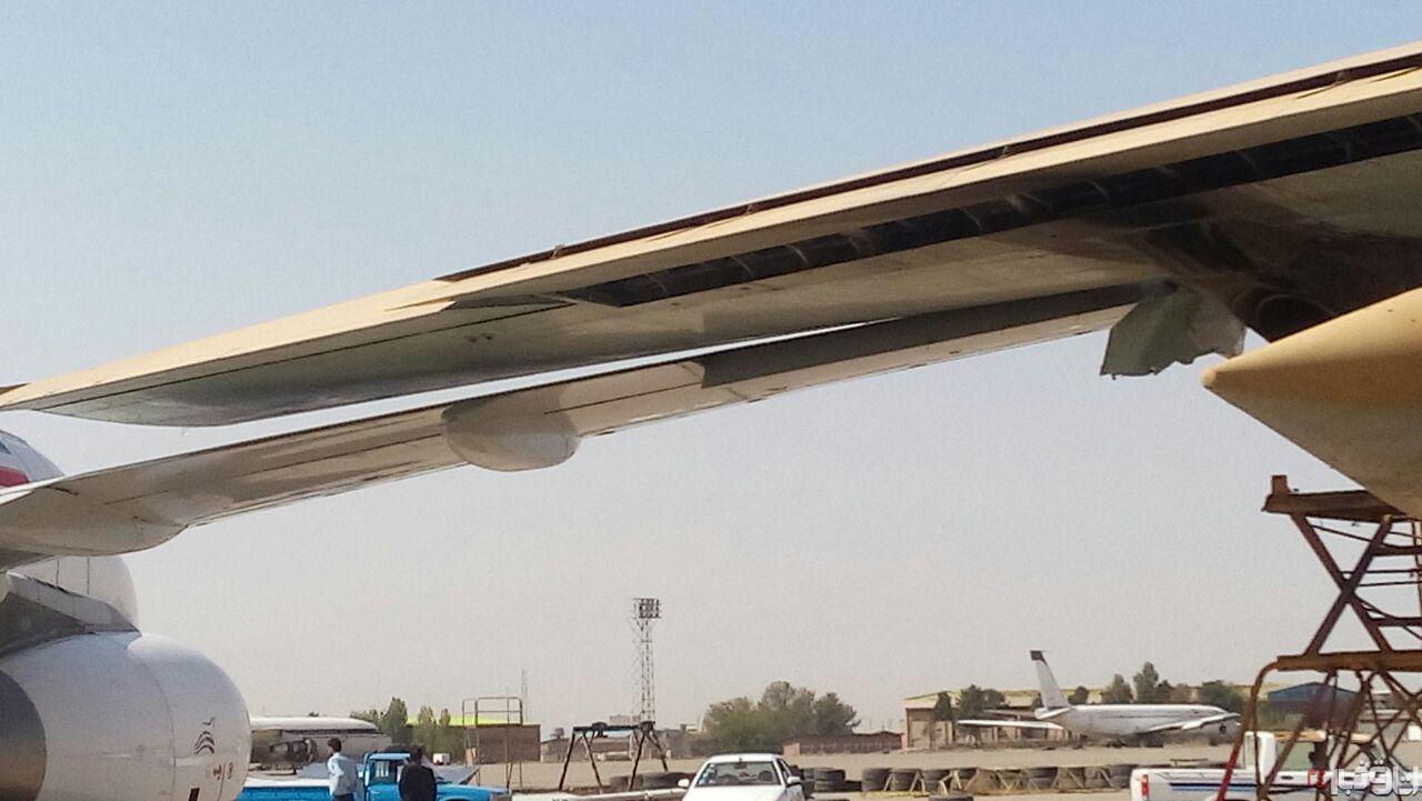 ـ بامداد روز یکشنبه 12 مهر 1394، این ایرباس درحالیکه در رمپ نیروی هوایی ارتش پارک بود، بدلیل قرار ندادن چاکس پشت تایرهای ارابههای عقب، به سمت عقب به حرکت درآمده و پس از طی مسافتی حدود 200 متر، از ناحیه بال راست با بال چپ یک فروند هرکولس C130 برخورد کرده و متوقف شد. این حادثه باعث شد هواپیما بیش از 40 روز زمینگیر شود.