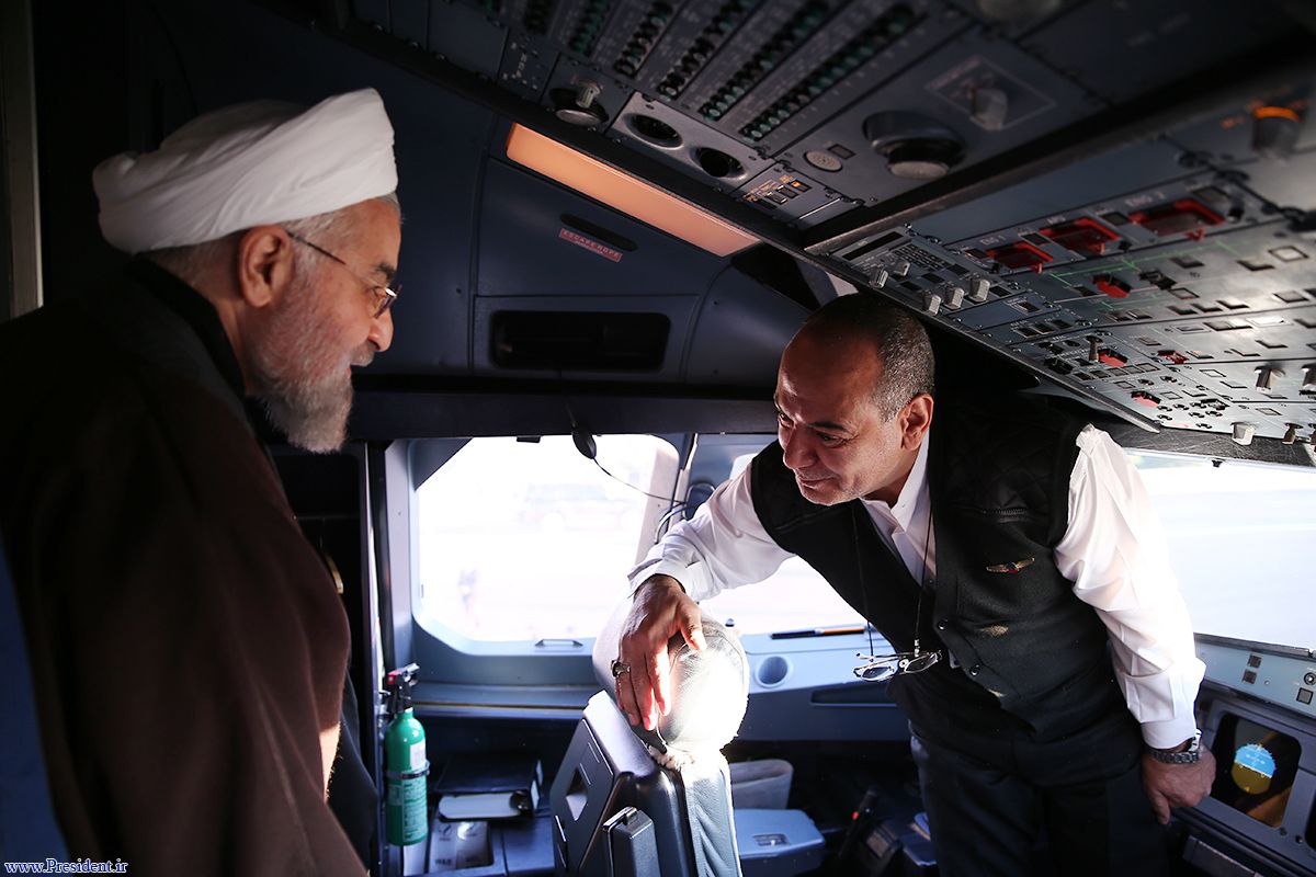 حضور روحانی در کاکپیت هواپیما در سفر به خراسان جنوبی