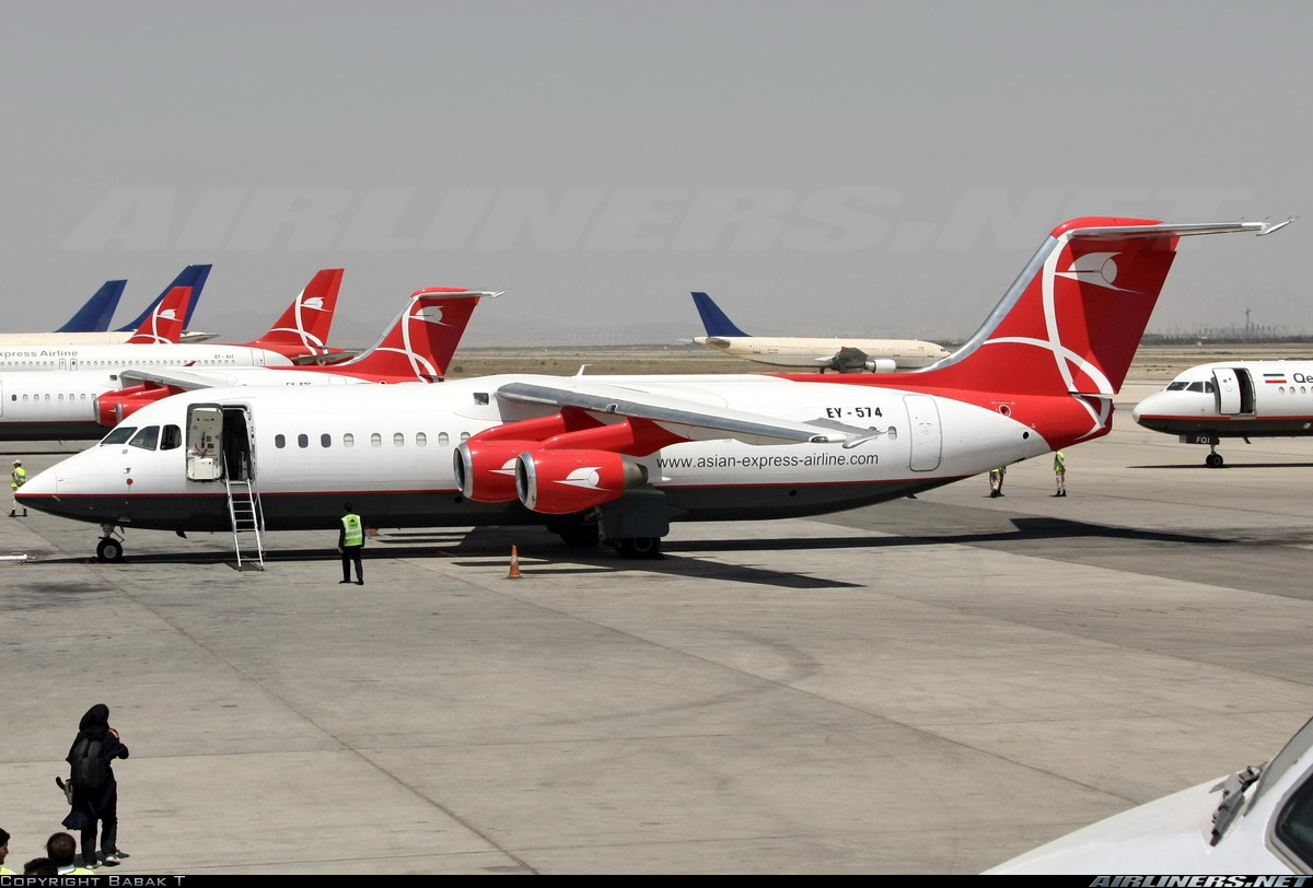 بیش از دو سال در این فرودگاه پارک شده بود تا اینکه مالک هواپیمایی قشمایر از طریق شرکت دیگر خود در تاجیکستان به نام Asian Express Airline که از جمله شرکتهای هولدینگ سورینت کیش بود، تلاش برای خرید این هواپیما را آغاز کرد. هواپیما ابتدا توسط شرکت لیزینگی Triangle Regional Aircraft برای برخی تعمیرات در 2012/08/22 به فرودگاه Exeter و در 2012/11/19 جهت رنگآمیزی به فرودگاه Bournemouth منتقل شد. هشت روز بعد به Exeter بازگشت و سرانجام در 3 دسامبر همان سال به دوشنبه، پایتخت تاجیکستان منتقل و رجیستر EY-574 برای آن ثبت شد.
