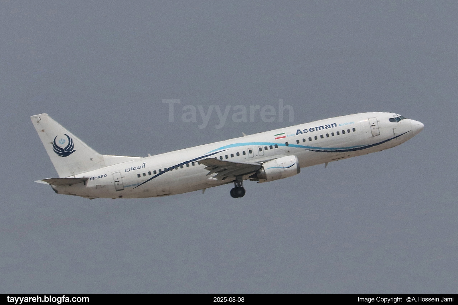 در 25 شهریور 1394 شرکت آسمان دو فروند از پنج هواپیمای بوئینگ 737 وارد شده توسط شرکت کاسپین ـ از جمله این هواپیما ـ را خریداری و و ضمن نامگذاری به فردوسی، رجیستر آن را به EP-APO تغییر داد. این هواپیما در 13 بهمن 1394 پس از انجام تست پروازی، با چیدمان صندلی C16Y134 عملیاتی شد.