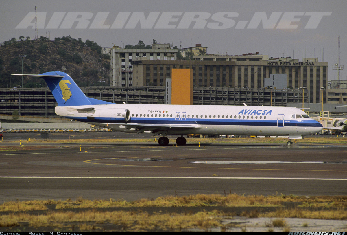 این هواپیما با شماره سریال 11343 ساخته شد و نخستین پرواز خود را در تاریخ 1991/06/28 انجام داد. در 1992/02/27 شرکت مکزیکی AVIACSA این فوکر را از GECAS که یکی بزرگترین شرکتهای تأمین مالی و لیزینگ هواپیما در دنیاست اجاره و بیش از چهار سال با رجیستر XA-RKN برای این شرکت پرواز کرد. منبع: وبلاگ طیاره