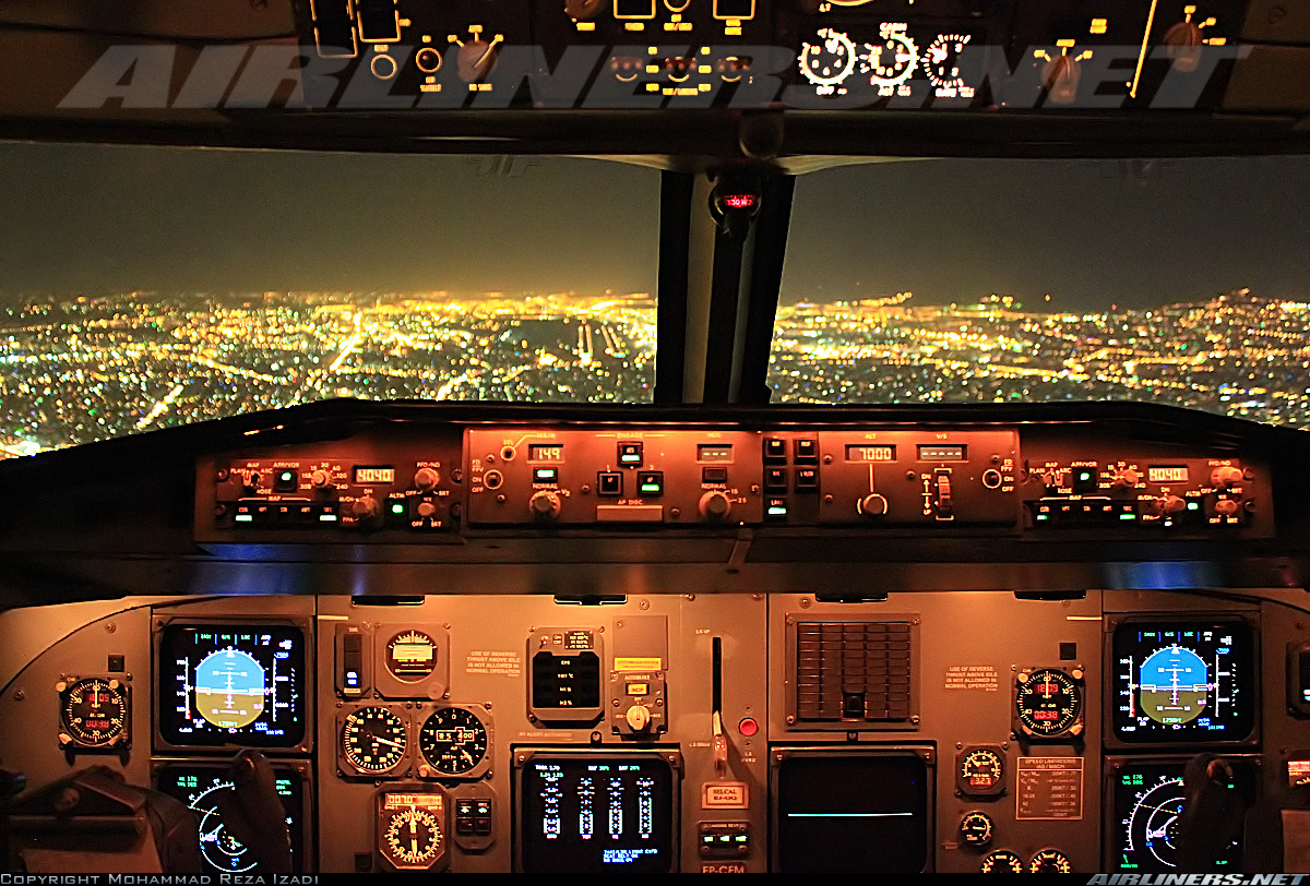 نمایی از کاکپیت هواپیما در شب