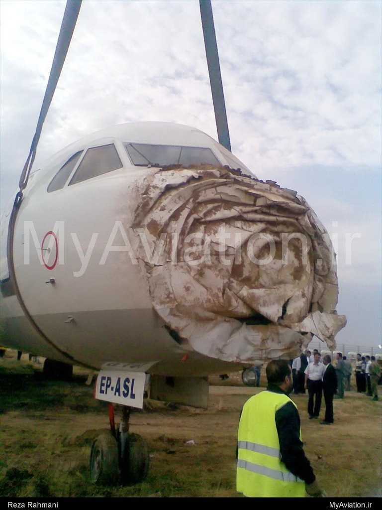 در تاریخ 4 شهريور 1389 این هواپيما در مسير تهران به تبريز با 103 مسافر و 7 خدمه به علت لغزنده بودن باند فرودگاه تبريز و عمل نکردن ریورس (ترمز) و تركيدگی لاستيک، 150 متر از انتهای باند خارج و به درون يك گودال سقوط كرد و از ناحیه دماغه و زیر بدنه آسیب دید.