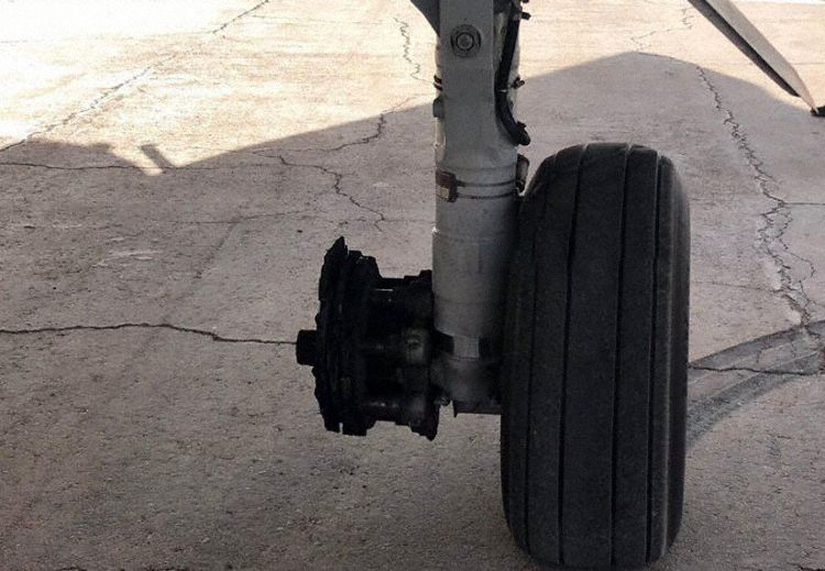 جدا شدن تایر هواپیما هنگام فرود در آغاجری