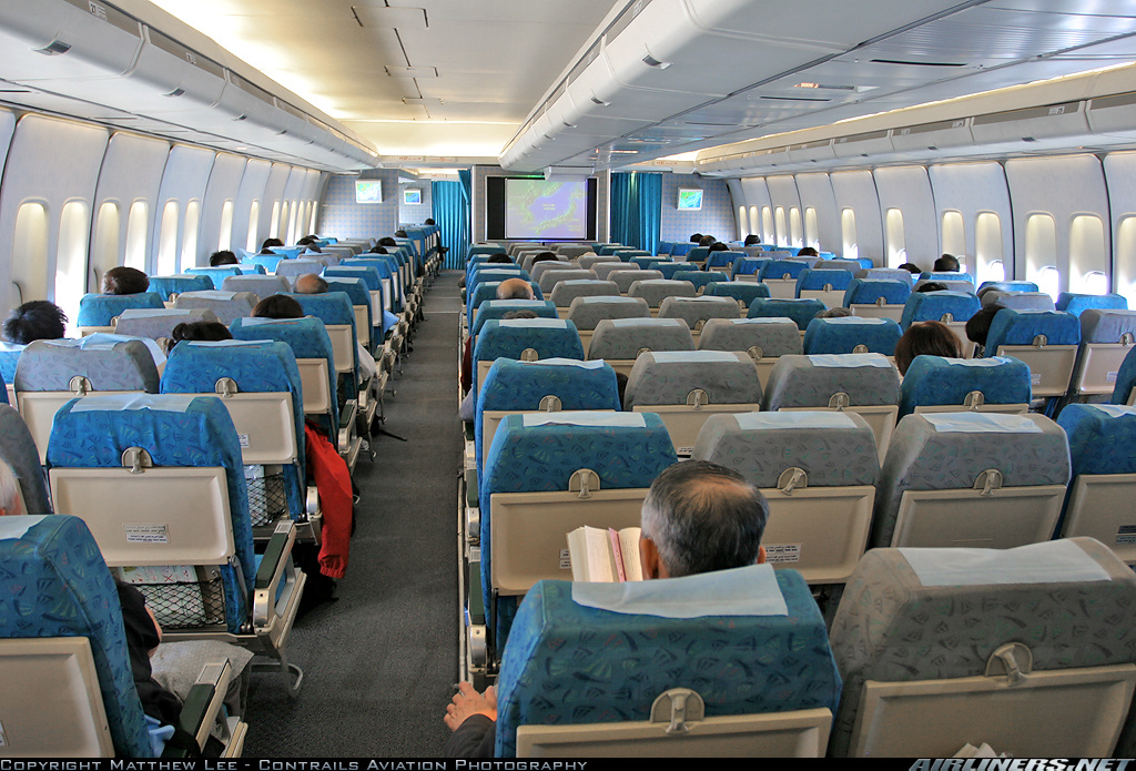 کابین اکونومی هواپیما / در پرواز توکیو ـ پکن ـ تهران با حدود 80 درصد صندلی خالی / فروردین 1387