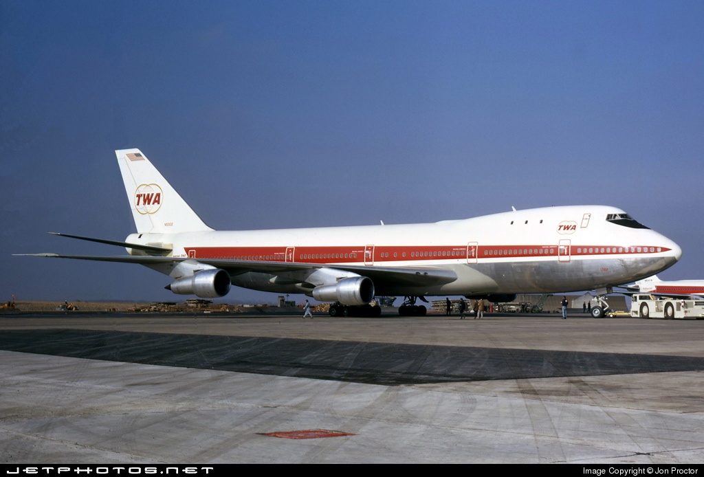 هشتمین بوئینگ 747 تولید شده، به سفارش شرکتTrans World Airlines (TWA)n و با شماره سریال 19668 ساخته شد. نخستین پرواز خود را در تاریخ 1969/12/07 انجام داد و بیست و چهار روز بعد با رجیستر N93102 به این شرکت تحویل داده شد.