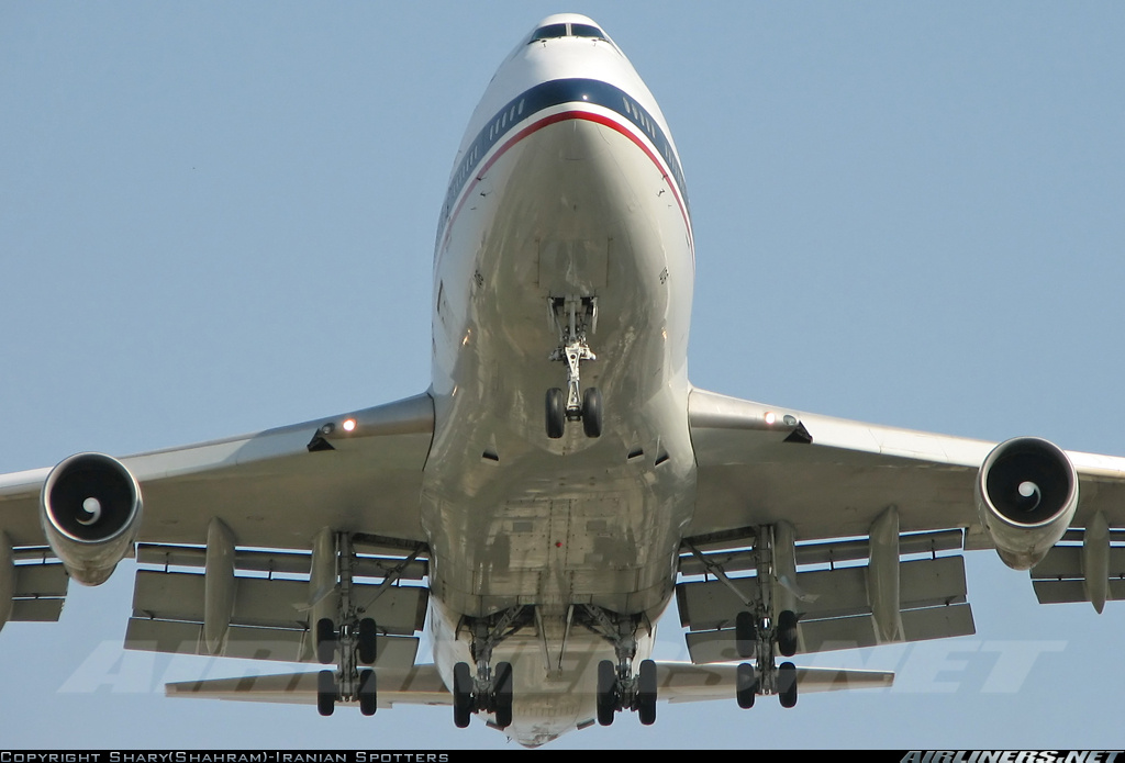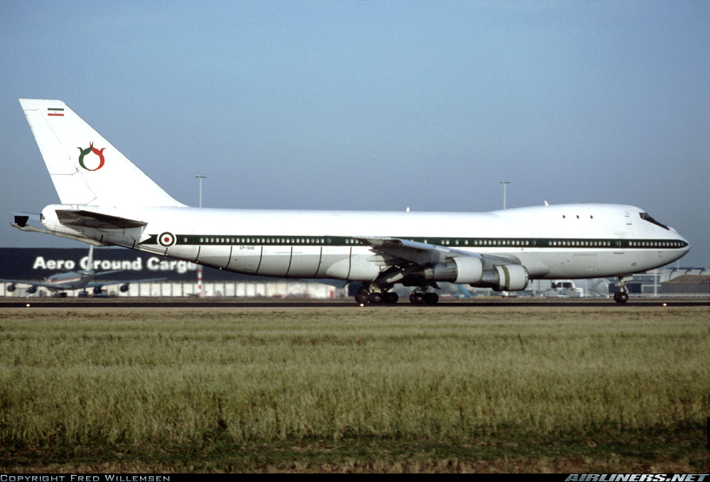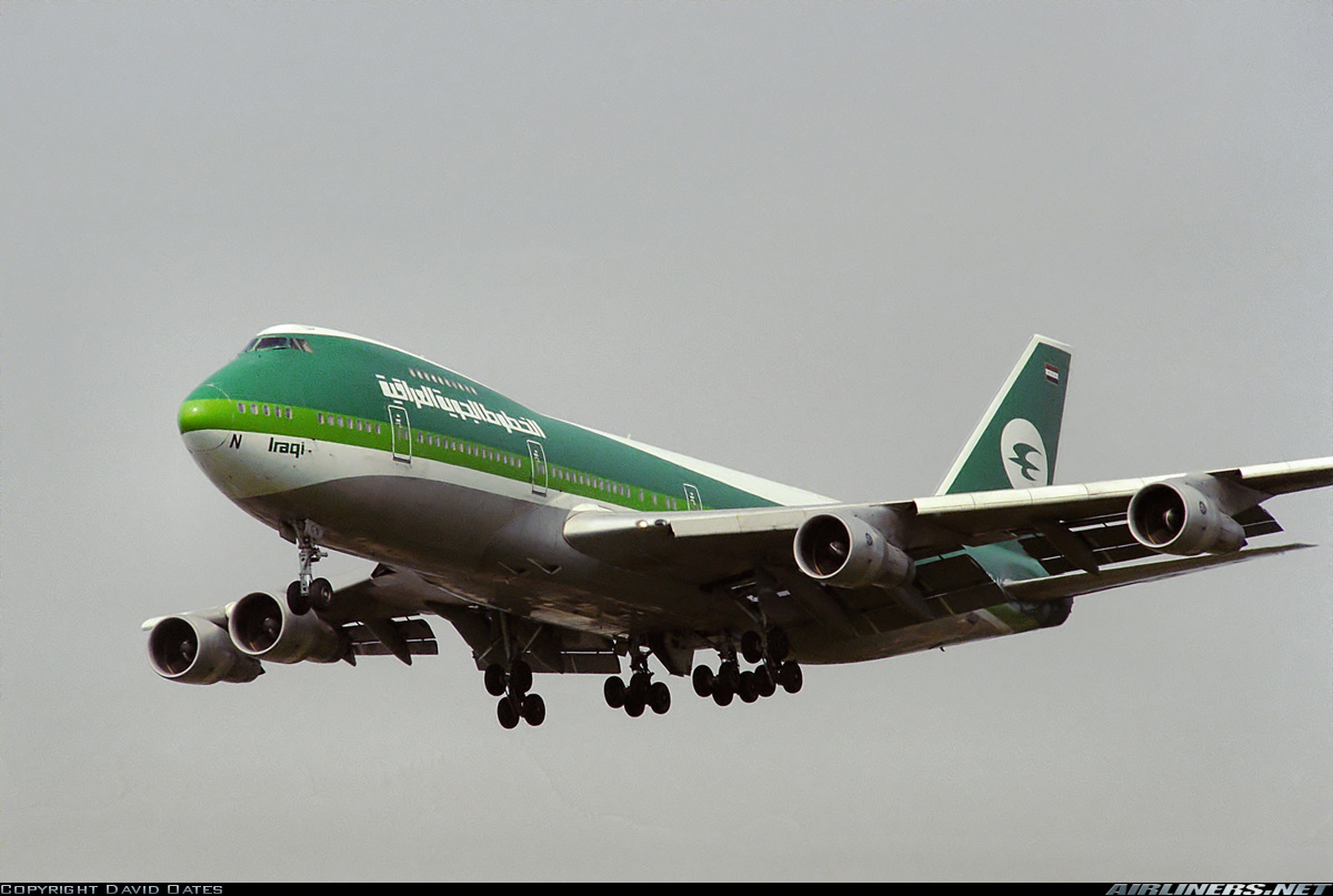 با آغاز جنگ اول خلیج فارس در سال 1369 شمسی (1991 میلادی)، رژیم بعث عراق برای در امان نگهداشتن هواپیماهای نظامی و غیرنظامی خود، تعدادی از آنها را به کشورهایی چون ایران، موریتانی، تونس، اردن و... منتقل کرد. این بوئینگ 747 یکی از این هواپیماها بود که در ششم بهمن 1369 وارد ایران شد. منبع: وبلاگ طیاره