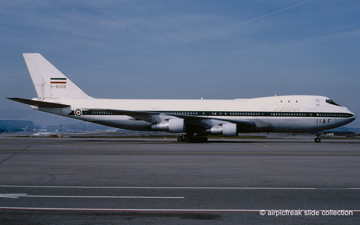 رجیستر 8106-5 در نیروی هوایی ایران به دو فروند بوئینگ 747 اختصاص یافت. نخستین بوئینگ 747 با شماره سریال 19668 که در زمان شاه خریداری شد و در حال حاضر از رده خارج شده است و دیگری با شماره سریال 21180 که متعلق به هواپیمایی عراق بود و در جریان جنگ اول خلیج فارس به ایران منتقل شد.