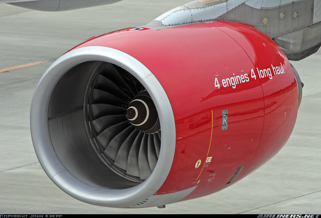 ویرجین آتلانتیک شعار: "چهار موتور برای مسیرهای طولانی" را بر موتورهای ایرباس 340 خود نوشته بود.