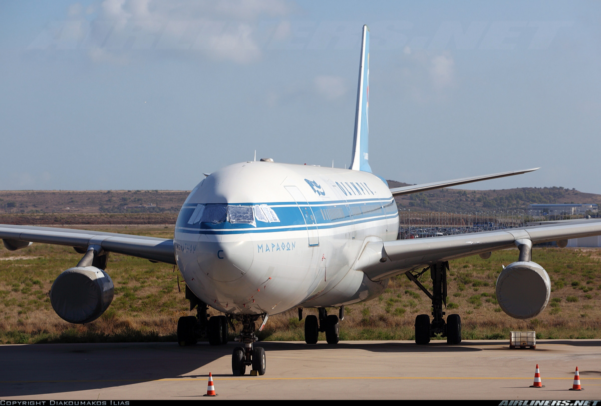 این هواپیما به سفارش Olympic Airways ـ که بعدها به Olympic Airlines تغییر نام داد ـ و با شماره سریال 280 ساخته شد. نخستین پرواز خود را در تاریخ 1999/07/13 انجام داد و در 14 اکتبر همان سال با رجیستر SX-DFC و با نام Marathon و پیکربندی کابین C32Y263 به این شرکت یونانی تحویل داده شد. در 2009/09/29 با ورشکستگی این شرکت به دلیل بحران اقتصادی در یونان از ناوگان خارج و ضمن استور شدن در فرودگاه آتن، به فروش گذاشته شد. این مطالب از وبلاگ طیاره کپی شده است.