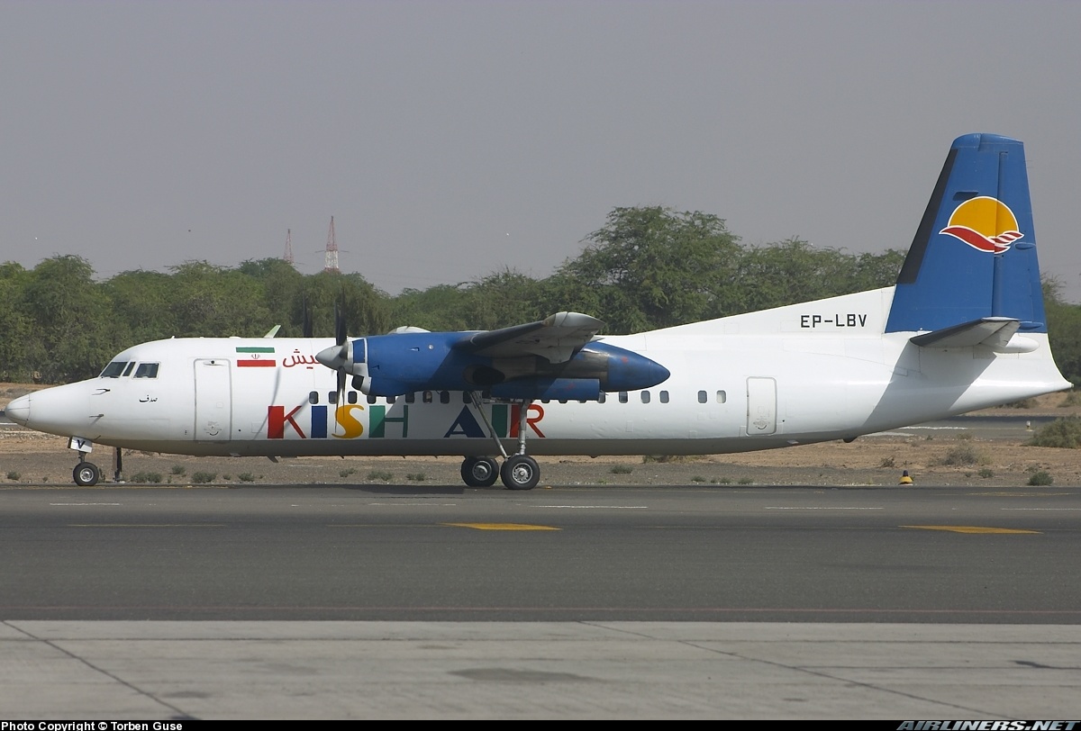 هواپیمایی کیشایر این فوکر را 2001/07/06 [مطابق با 15 تیر 1380] خریداری و پس از انجام تعمیرات در هلند، با رجیستر EP-LBV وارد کشور کرد. پس از حدود شش سال پرواز برای این شرکت با نام صدف، در ابتدای سال 1386 که زمان چک سنگین آن فرارسیده بود به علت عدم صرفه اقتصادی، از خدمت خارج و در فرودگاه مهرآباد زمینگیر شد تا از قطعات آن به عنوان لوازم یدكی سایر فوکرهای 50 این شرکت استفاده شود.