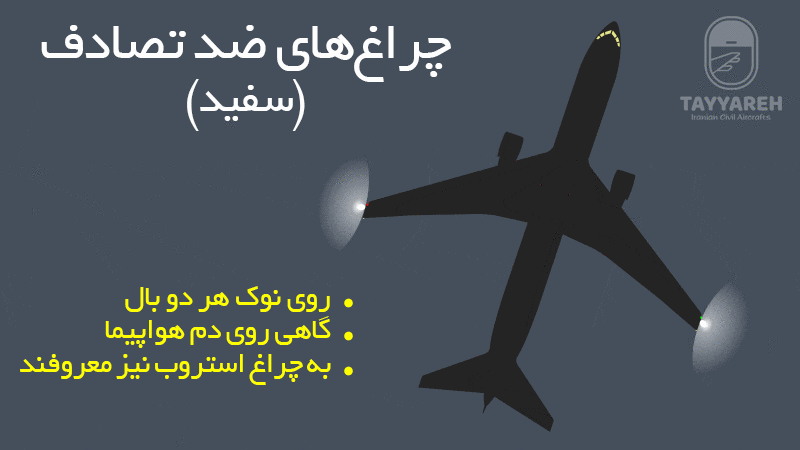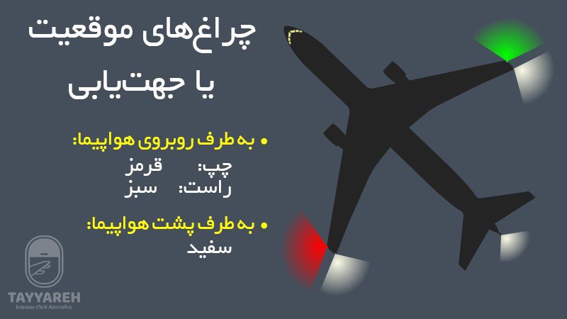 1. چراغهایی که وظیفه تعیین موقعیت هواپیما و کاهش خطر برخورد با آن را دارند؛