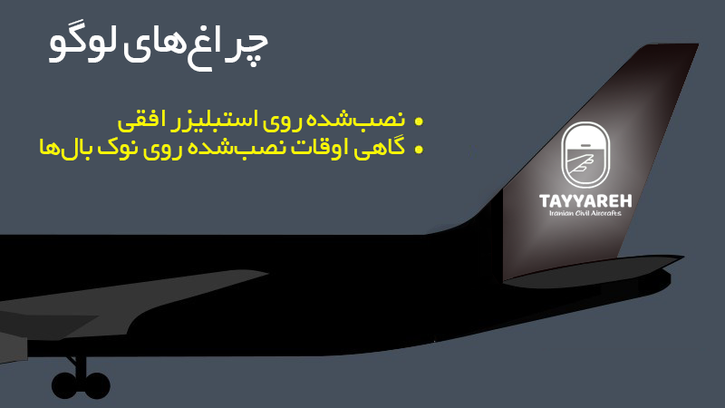 استفاده از چراغهای لوگو ضروری نیست و معمولاً برای مزایای تبلیغات استفاده میشوند تا آرم ایرلاین از فاصله دور نمایان شود.