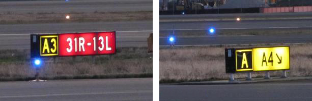 علائم قرمز ( 31R ) همیشه نشاندهنده باند است. رنگ قرمز به خلبانان یادآوری میکند که بدون اجازه کنترلکننده ترافیک هوایی اقدامی نکنند.
