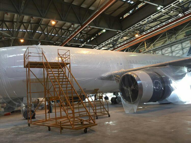 انجام مراحل رنگآمیزی هواپیما در فارسکو