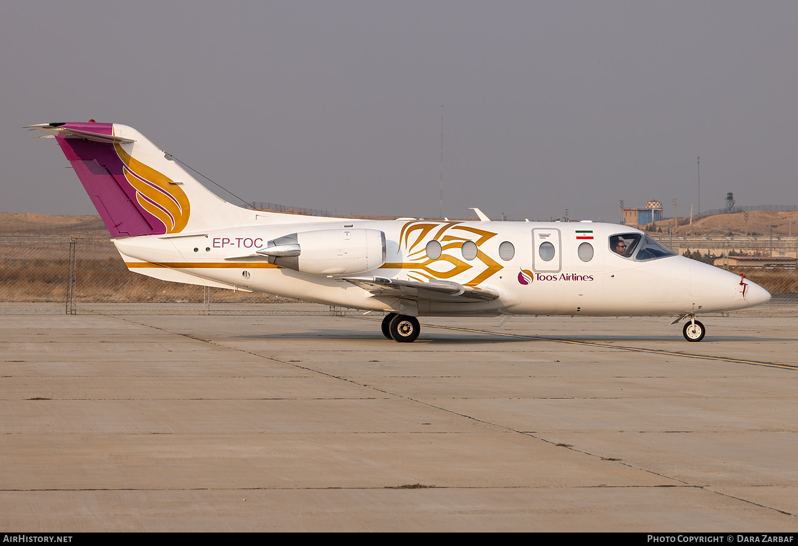 این هواپیما در قالب یک پکیج چند فروندی هواپیمای بیچجتِ «هاوکر 400XP» خریداری و در تابستان 1400 وارد کشور شد. هواپیما دارای هفت صندلی است و هنگام خرید 1100 ساعت تایم پرواز داشت و از آبان 1402 بصورت رسمی و با رجیستر EP-TOC فعالیت خود را برای طوسایر آغاز کرد.
