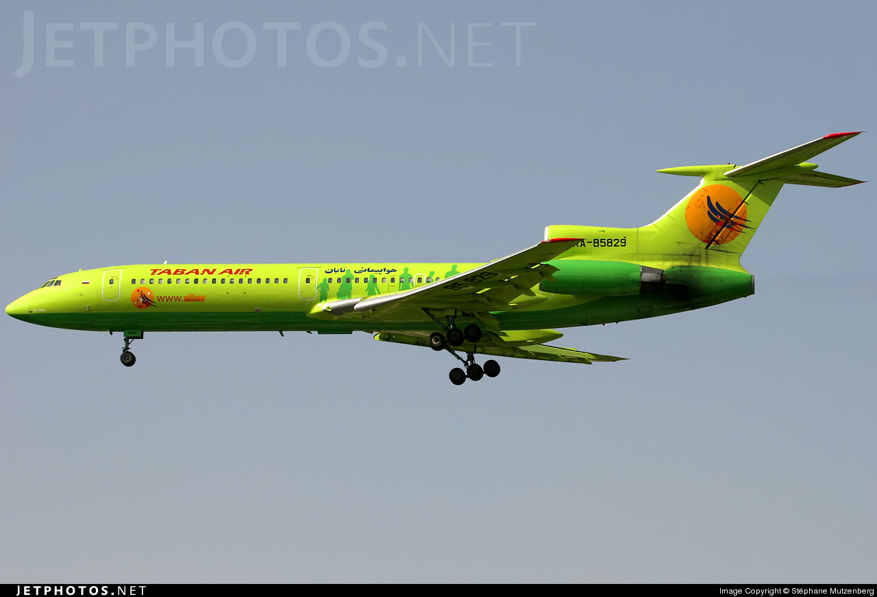 از 2008/12/30 [مطابق با 10 دی 1387] هواپیمایی تابان این توپولف را با رجیستر RA-85829 به اجاره خود درآورد. با ممنوع شدن پرواز توپولفها در ایران، هواپیما از اردیبهشت 1389 در فرودگاه مشهد پارک شد و سپس در شهریور ماه به روسیه بازگشت.