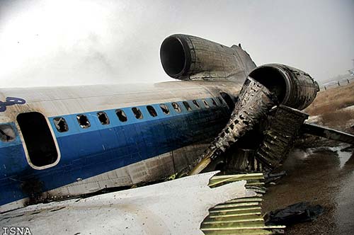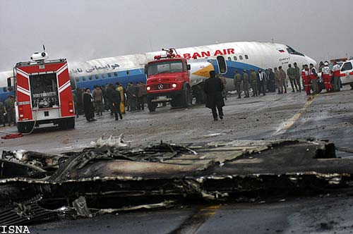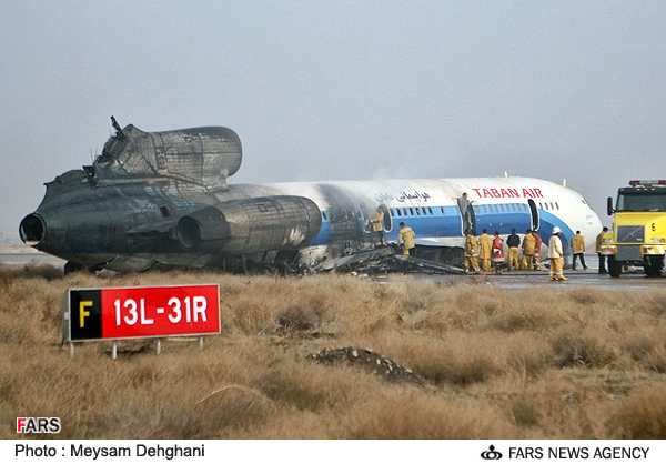 شامگاه شنبه سوم بهمنماه 1388 این هواپیما با 157 مسافر که از زائران عتبات عالیات بودند و 13 خدمه از آبادان به سمت مشهد پرواز کرد. به دلیل نامساعد بودن هوای مشهد موفق به فرود نشد و به همین جهت به سوی اصفهان تغییر مسیر داده و در ساعت 35 دقیقه بامداد چهارم بهمن در فرودگاه اصفهان به زمین نشست. هواپیما پس از 5 ساعت با 170 سرنشین خود دوباره راهی مشهد شد که ساعتی بعد به دلیل بدحالی یک بیمار قلبی و با وجود پائین بودن قدرت دید، خلبان هواپیما با مسئولیت خودش درخواست فرود اضطراری در فرودگاه مشهد میدهد که در حین فرود بدلیل اینکه خلبان چرخها را روی تاکسیوی بر زمین مینشاند، هواپیما از باند خارج شده و دوباره به باند باز میگردد. با وجود سانحهدیدن هواپیما، تمامی مسافران با استفاده از سرسرههای هواپیما از آن خارج شدند و آتشسوزی پس از خارج شدن مسافران در قسمت انتهایی هواپیما رخ داد. 46 نفر از مسافران دچار شوک و استرس و آسیبهای بدنی شدند. در این حادثه، داخل هواپیما و موتورهای آن به طور کامل سوخته و بال سمت راست و دم و چرخ هواپیما نیز از هم جدا شده و یك سوم انتهای هواپیما از بین میرود.