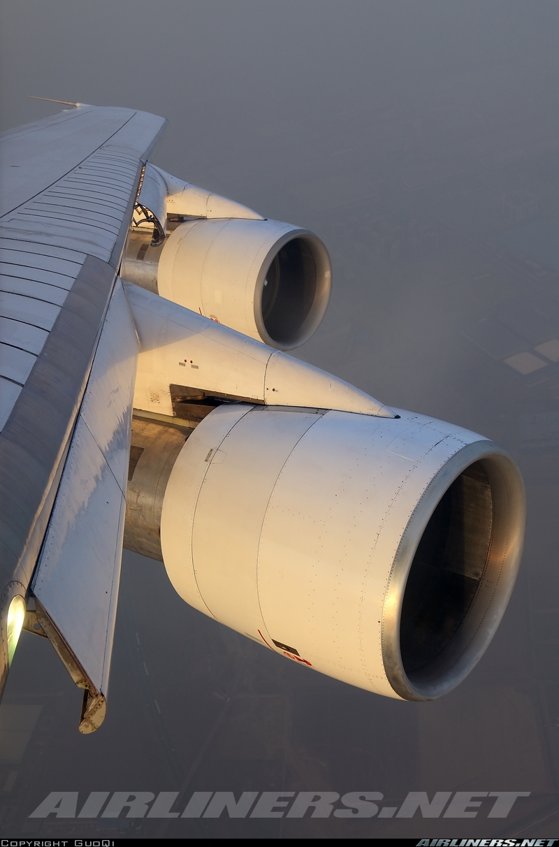 این هواپیما از چهار موتور PW JT9D-7F ساخت شرکت Pratt & Whitney در زیر دو بال، با طول هر موتور 3.26 متر و عرض 2.34 متر و با وزن هر کدام 4010 کیلوگرم و رانش هر کدام 47900 پاوند استفاده میکرد.